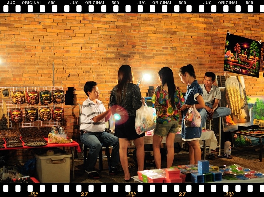 บริเวณนี้เป็นหลังกำแพง ประตูท่าแพ จะดูไฮโซนิดหนึ่ง คือวางสินค้าบนโต๊ะสูงขึ้นมา