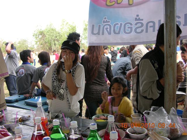 มีโปรโม๊ตด้วยครับ..ร้องโฆษณาแจก...แข่งขันกันภายในซุ้มอาหารครับ..คนนี่แม่กิมไล้ ใจดี สว่างอารมณ์...