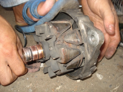 2 ชม.ผ่านไปลากจูงกันมาเปิดดูหาสาเหตุที่คาดไว้....อย่างนี้เลยพี่น้อง..Alternator เสียหายอย่างหนักกับรถผ่านงานผ่านการมา 6 ปี.. Carbon brush rings เป็นร่องลึกทั้งคู่..