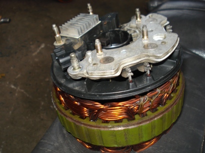 ปัญหาไม่มาปัญญาไม่เกิด..แบบกึ่มๆๆ..ครับ...จัดการยำๆ อุปกรณ์ที่มีประจำบ้าน....โดยเอา Alternator ของที่เสียแล้ว เลือกเอาเฉพาะ ชิ้นของ ARMATURE ที่มี Carbon brush rings ติดดีๆอยู่มาสวมรอย..