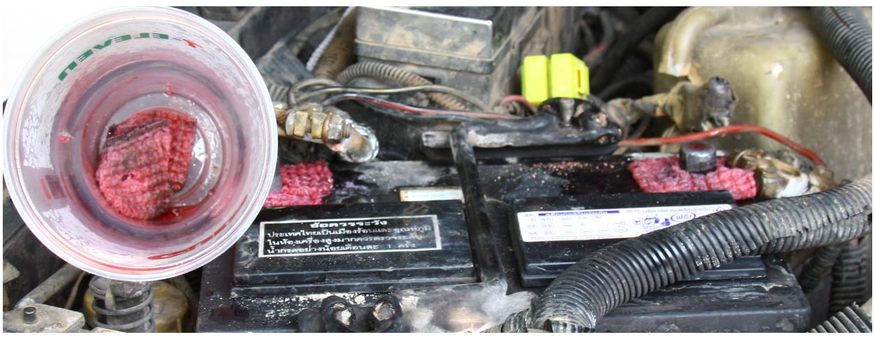 น้ำมันเกียร์นิดเดียว หรือ จารบีเหลวก็ได้ ชุบใส่ผ้าที่เจอะรูทำเป็นแหวนผ้าอันเล็กๆๆ พองาม ....ใส่เข้าไปก่อนใส่ขั้ว battery ก็จบครับ...