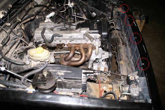 ฝากระโปรงมันเผยอมากกว่าแก้มหน้าใช้หรือเปล่าล่ะครับ อย่าปรับที่กระโปรงครับ ตัวที่ปรับได้คือแก้มหน้าครับ มันจะมีน็อตอยู่สี่ตัว ซึ่งรูมันจะเป็นวงรีทำให้ตัวสกรูสามารถสไลท์ตัวขึ้นลงได้(ตามรูปนะครับ ลองก้มดู) เราก็คลายน็อตทั้งสี่ตัวออกก่อนแล้วเอามือดึงแก้มขั้นมารั้งไว้พร้อมกับขันน็อตให้แน่น ดึงที่ละจุดแล้วขัน(สี่จุด) แล้วลองปิดกระโปรงดู ถ้าไม่พอดีก็คลายแล้วดึงขันใหม่ครับ(ผมเจอบ่อยเพราะถอดหม้อน้ำซ่อมรั่วไป ห้ารอบแล้ว)