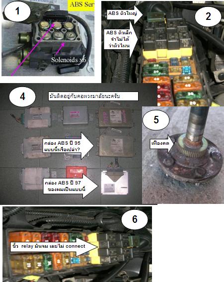 6) คิดว่า OK ล่ะ ทำดีหมดแล้วสมบูรณ์แล้วกับ ABS ขับออกมาไฟติดอีก คราวนี้ไม่ดับเลยค้างยาว ในใจคิดว่ามันดีหมดแล้วไม่น่ามีอะไร หรือว่า relay มันจะเสียอีก เลยถอด relay จะไปสลับตำแหน่งอื่น ก็เจอว่า ขั้ว relay มันจม มันไม่สัมผัสกัน ก็จัดการดันมันขึ้นมา คราวนี้ก็ใช้งานได้ปรกติ สมบูรณ์เรียบร้อยครับ เหนือนกับมันนานเลย เอาใจช่วยครับ ตอนโทรมาคุยก็ไม่รู้จะอธิบายยังไง มันไม่เห็นภาพนะครับ และก็มันใช้อาการเดาพอสมควรเลย แต่ถ้าทำตามนี้หมดมันก็ไม่น่ามีอะไรแล้วนะครับ หมดระบบมันแล้ว เหลือแต่ระบบลมแล้วหละ