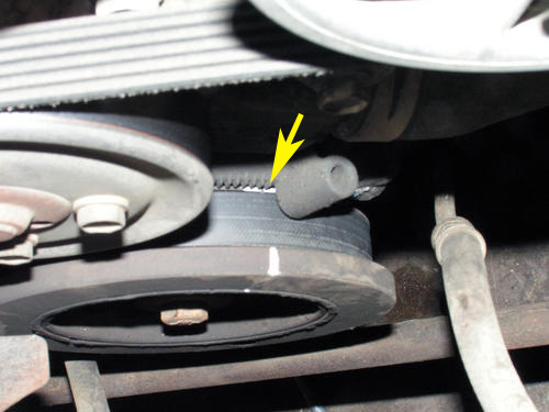 1 หมุนพูเล่ตามเข็มนาฬิกา (ยืนหน้ารถหันหน้าเข้าเครื่อง แล้วหมุนตามเข็มนาฬิกา) ใช่ไฟฉายส่องดูที่ขอบ
