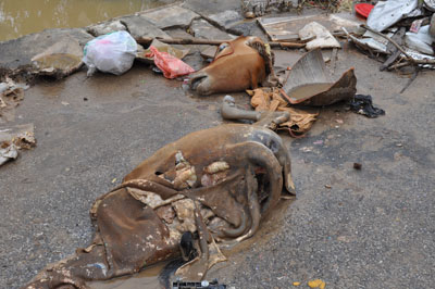 สภาพบ้านเรือนเหม็นครุทั่วเมือง ซากสัตว์ตายเกลื่อน