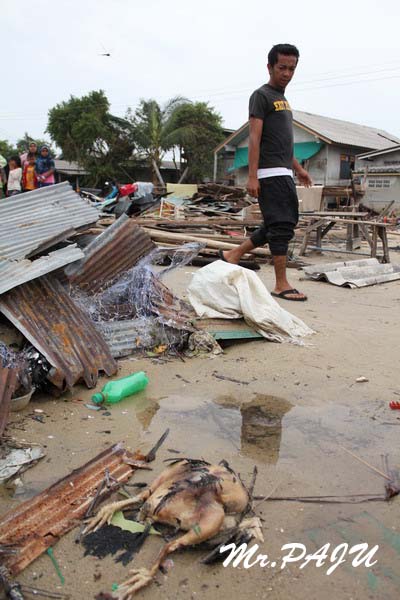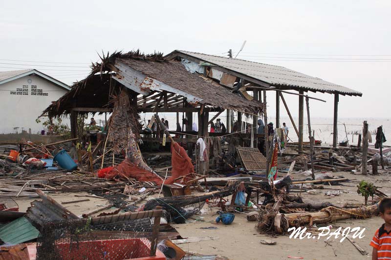 สภาพความเสียหายเนื่องจาดีเพรสชั่น ที่บ้านดาโต๊ะ อ.ยะหริ่ง จ.ปัตตานี น้องๆสึนามิ