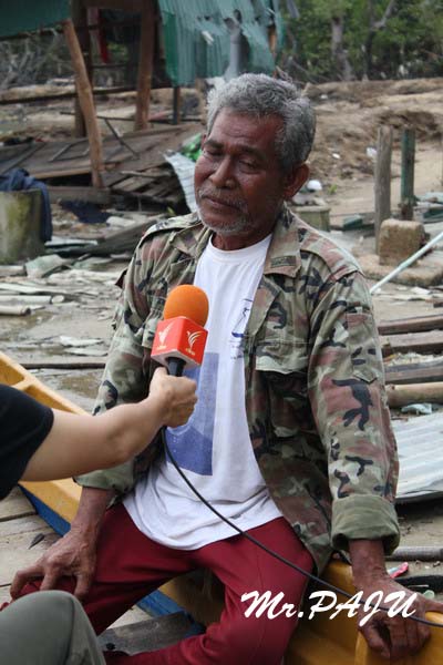 ชาวบ้านคนนี่บอกว่าเกิดมาไม่เคยเจอแบบนี้ พายุเกย์ก็เจอแล้ว ไม่เหมือนแบบนี้ และน้ำตาคลอเบ้าพร้อมเสียงสะอื้นเมื่อถามว่า "กลัวมั้ย"