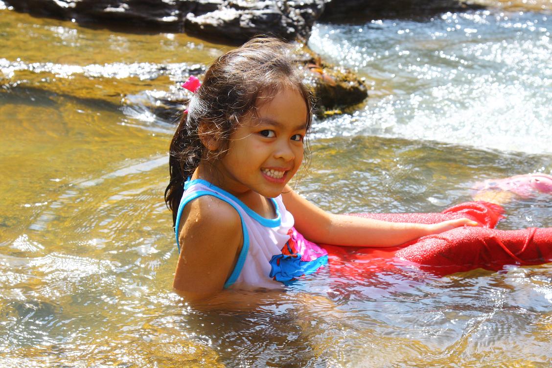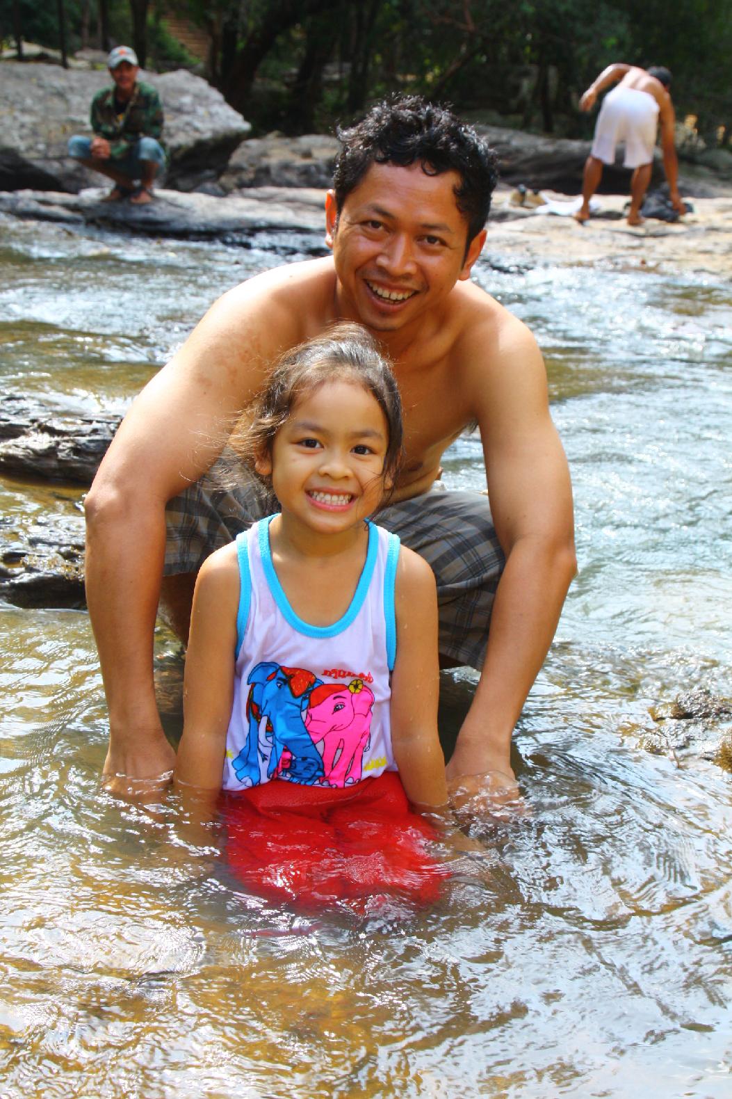 ความสุขที่หาได้ของพ่อลูกริมน้ำตก