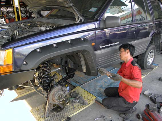 ZJ Laredo ของคุณ John คันล่าสุดของ Jeepนกขมิ้น ช่วงล่างถูกลื้อออกหมดเตรียมตัว สำหรับการปรับปรุงช่วงล่างและใส่ชุดยก 6นิ้ว