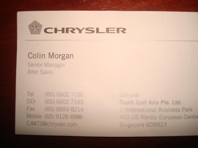 แจ้งสมาชิกทุกท่านทราบเมื่อวันศุกร์ที่ 11 มีนาคม ลูกสาวเดินทางไปร่วมงานแต่งเพื่อนที่ลำปางมีเพื่อนอีกคนอยู่เชียงใหม่เลยนั่งเครื่องไปลงเชียงใหม่ ลูกสาวได้พบกับสามีภรรยาคู่หนึ่ง(หญิงไทย)เข้ามาทักทายลูกสาวว่ามีแหล่งอะไหล่ JEEP ที่สิงคโปร์(ที่เข้ามาทักทายเพราะเห็นว่าลูกสาวใส่เสื้อยืด "JEEP UNITYCLUP" ได้คุยกันนิดหน่อยสามีภรรยาจึงได้ยืนนามบัตรให้สมาชิกท่านใดสนใจลองติดต่อดูครับเพื่อเป็นประโยชน์ต่อเพื่อสมาชิกต่อไป