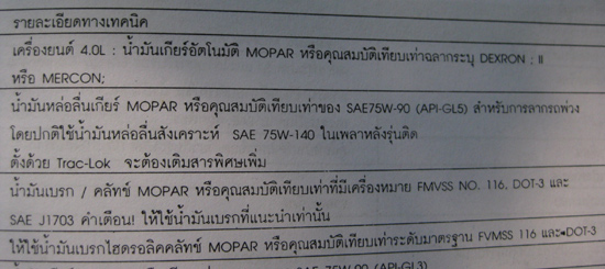 นมล.เกียร์ Mopar หรือคุณสมบัติเทียบเท่าของ SAE 75W-90 (API-GL5)