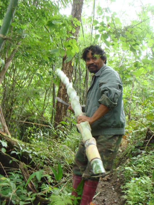 เห็นแล้วก็..นำอาวุธออกมาจัดการตัดลำไผ่เป้าหมายลงมา..และขอขอบคุณนายแบบเป็นอย่างสูงมา ณ.ที่นี้ด้วยครับ..หล่อๆ มักๆๆ.