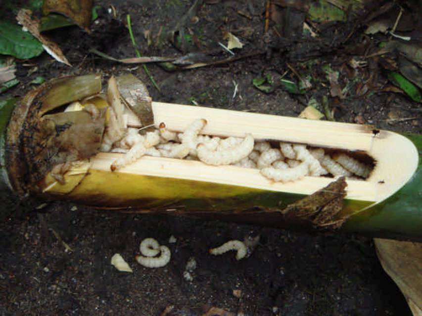 ...แต่งตัวให้เหมาะสมกับการไปในสถานที่ ก็เพื่อความปลอดภัยเป็นหลักไว้ก่อน..เริ่มเลย ดุ่มๆ เข้าป่าไผ่มองหาลำไผ่ที่อยู่รอบๆกอ หาปล้องไผ่ที่มีรอยซ้ำๆกัน.