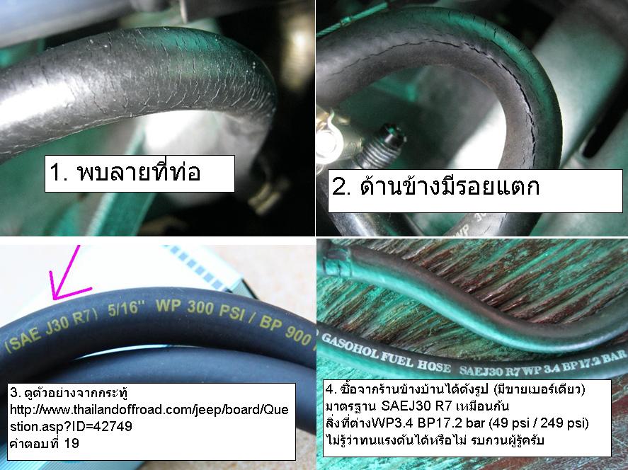 วันนี้ตรวจพบท่อน้ำมันมีรอยแตกลายงา เลยซื้อท่อยางใหม่มาเปลี่ยน เบอร์ท่อ SAEJ30 R7 WP3.4 BP17.2 BAR ไม่มั่นใจว่าทนแรงดันได้หรือไม่ ตอนนี้เปลี่ยนไปก่อนคิดว่าน่าจะดีกว่าของเก่า