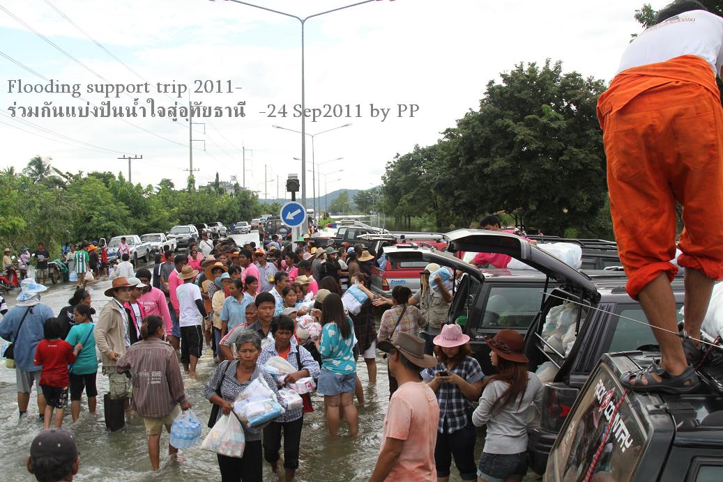 ** เนื่องจากเรือที่จะเข้าพื้นที่จะเข้าพื้นที่แจกของ มีอยู่ 3 ลำที่เป็นท้องแบน รวมคนและของแล้ว น่าจะพาสมาชิกไปได้ไม่มาก จึงมีความเห็นว่า เพื่อเป็นการค่าเวลาระหว่างรอพลพรรคที่ไปแจกของ ก็จะขึ้นไปชมวิวเมืองอุทัยที่กำลังน้ำท่วม + ไหว้พระกันบนยอดเขา ไปดูจุดที่เป็นตำนานของประเพณีตักบาตรเทโวกัน บนนั้นคาดว่าจะมีอาหารขาย ถ้าบ้านคนขายน้ำไม่ท่วม จึงเรียนมาเพื่อสมาชิกทราบ และลงรายชื่อร่วมขบวน เพื่อการจัดกำลังที่เหมาะสมครับผม