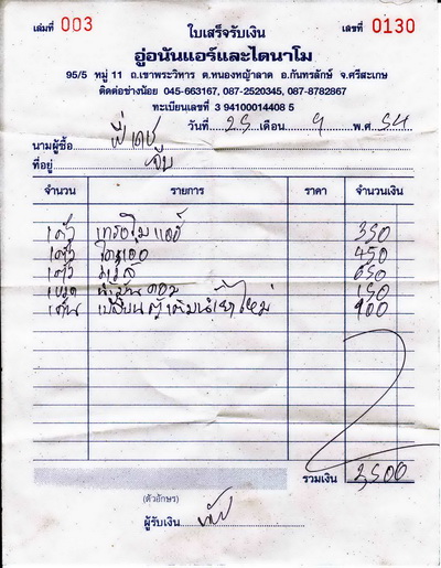เพื่อนๆใกล้เคียงถ้าอยากเปลี่ยนตู้แอร์สอบถามได้... สั่งซื้อตู้แอร์ที่อุบลฯ 2800 บาท ส่วน วาล์ว ไดเออร์ เทอร์โม ที่กันทรลักษ์มีขาย.. ตอนนี้เย็นฉ่ำครับ