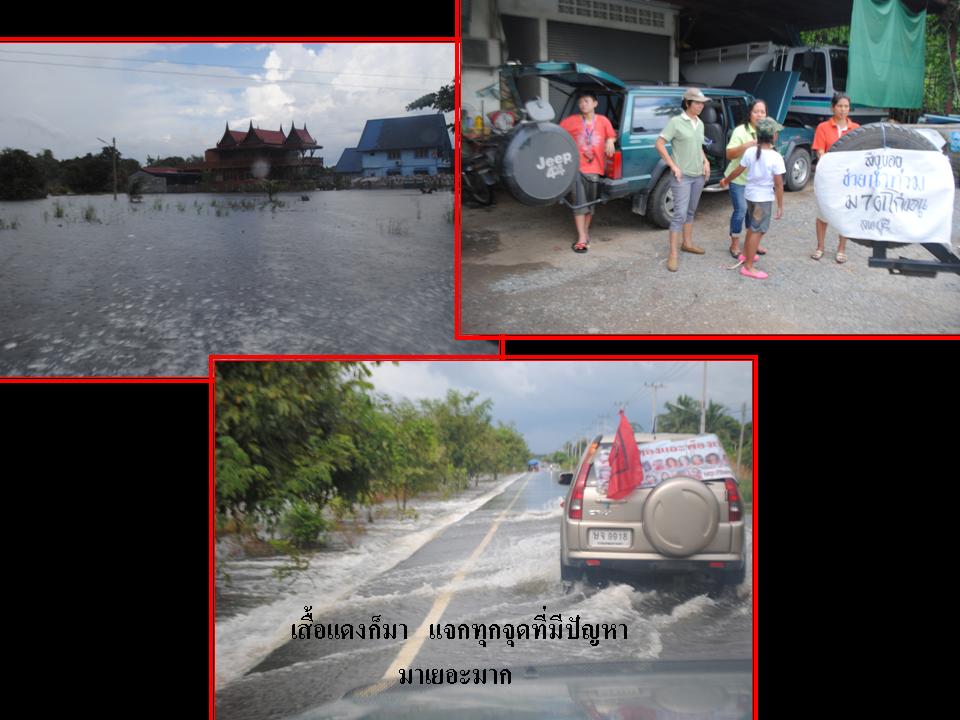 เดินทางลำบาก น้ำท่วมสูง เตี้ยสุดคือ JEEP ที่ผมขับ บางช่วงน้ำกระแทกล้นฝากระโปรงเลย โดยเฉพาดสวนกับรถทหารที่มาบริการรับส่งชาวบ้าน