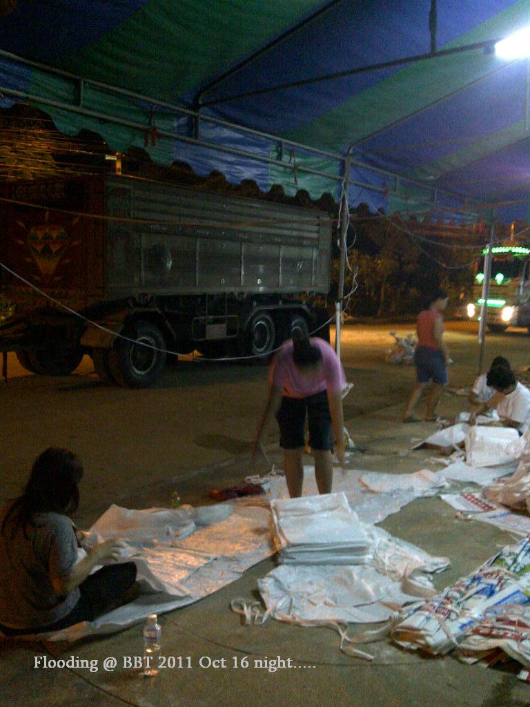 ขนทรายกันทุกวันทุกคืน เกือบ 2 weeks แล้ว...กลางวันได้กำลังพล จากเรือนจำ, กองทัพบก และ จ้างผู้รับเหมา มาเรียงกระสอบทราย...