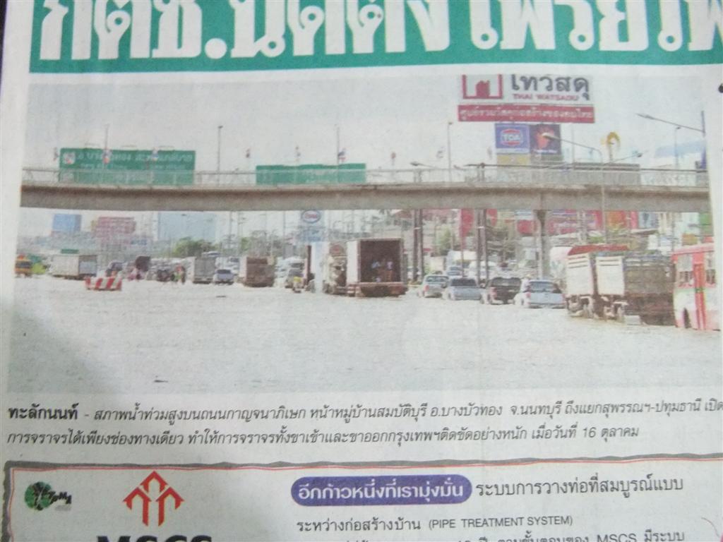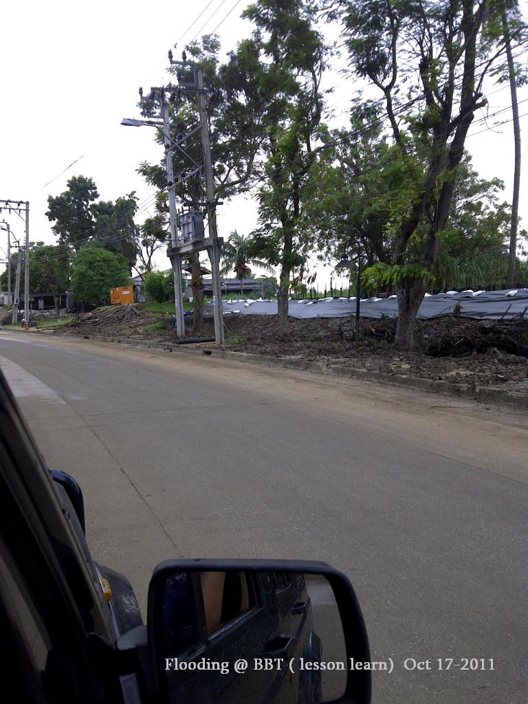 ทางเข้าหมู่บ้านผมก็แห้งแล้วครับ เช้าวันนี้ (ถ้าไม่พังลงมาอีก 555) สูบออกด้วยท่อขนาดโต 1 เมตร 6 ปั้ม และ มีคันดินเสริมพร้อมพลาสติดตามสูตรของ นวนคร ที่ทำกันน้ำ...อีกชั้น...สู้ๆๆๆ