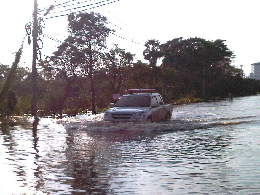 ช่วงแรกวิ่งลุยระดับประมาณ 40 ซม. ชิวชิว แต่เซ็งพวกรถกระบะวิ่งสวนแรงมาก ทำเอาระดับน้ำที่ปะทะหน้ารถเราขึ้นไปอีก 10-15 ซม