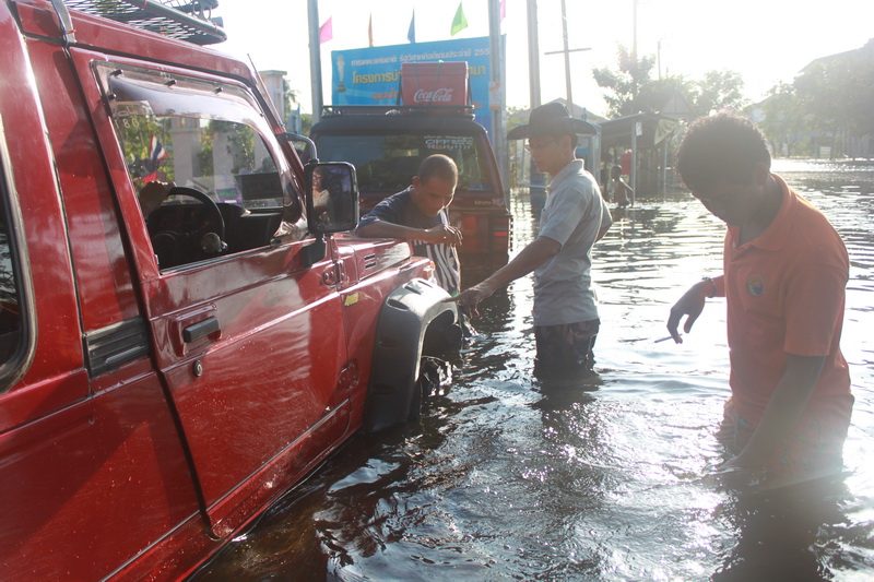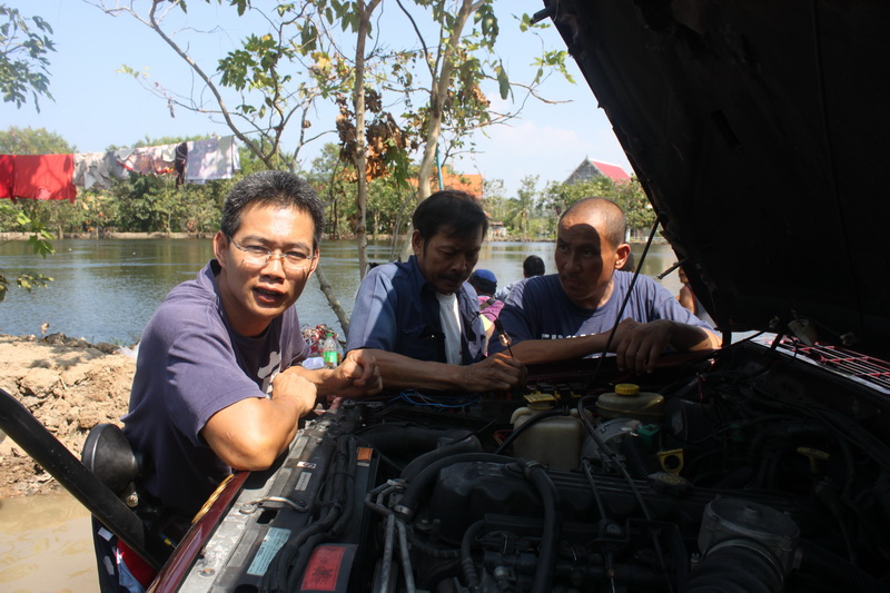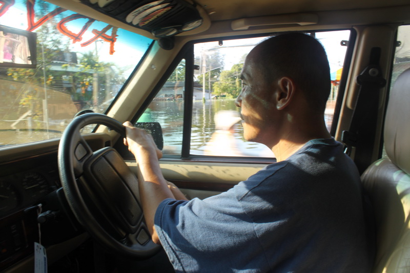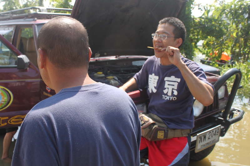 พี่น้อยบางนา กะว่าจะลงมาล้างรถซักหน่อย จะได้เอี่ยม ๆ ก่อนเข้าไปแจกของให้ผู้ประสบภัย
