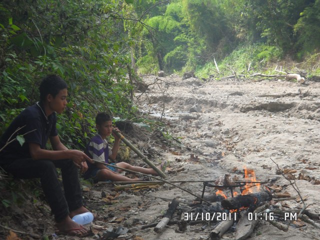 และนักเรียนลงมาเก็บฟืน เพื่อใช้เป็นเชื้อเพลิงในการประกอบอาหารของนักเรียน