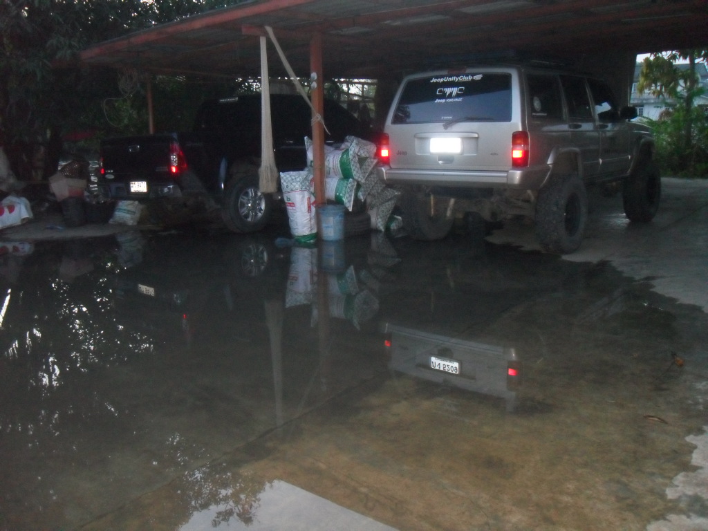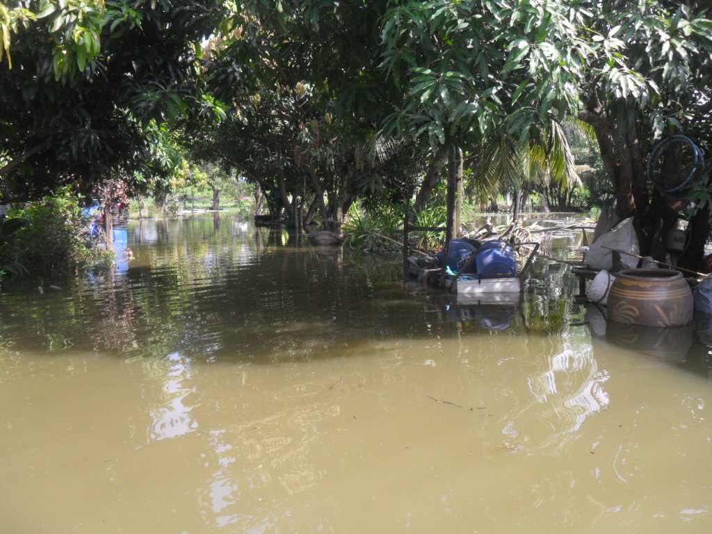 ตอนนี้น้ำเริ่มเข้าบ่อปลา ด้านหน้าบ้าน