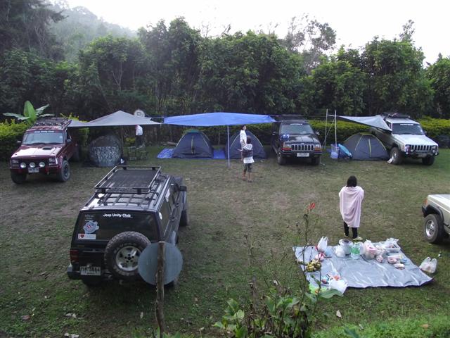 กางเตนท์กันข้างรถคู่ชีพไว้ยึดฟลายชีทได้ด้วย..แต่ก้อกันน้ำค้างไม่อยู่เหมือนกัน แฉะไปหมด