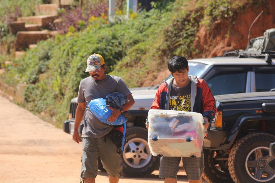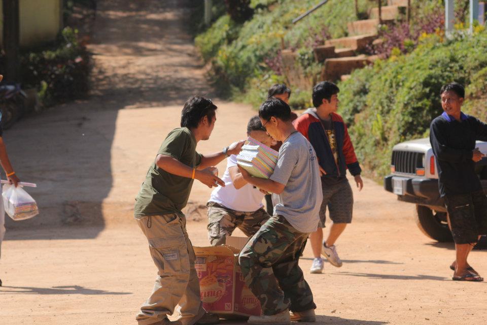 อาจารย์แตจากวิทยาลัยการอาชีพลำปาง(เสื้อขาว) หอบหิ้วสิ่งของมาร่วมด้วยช่วยกัน