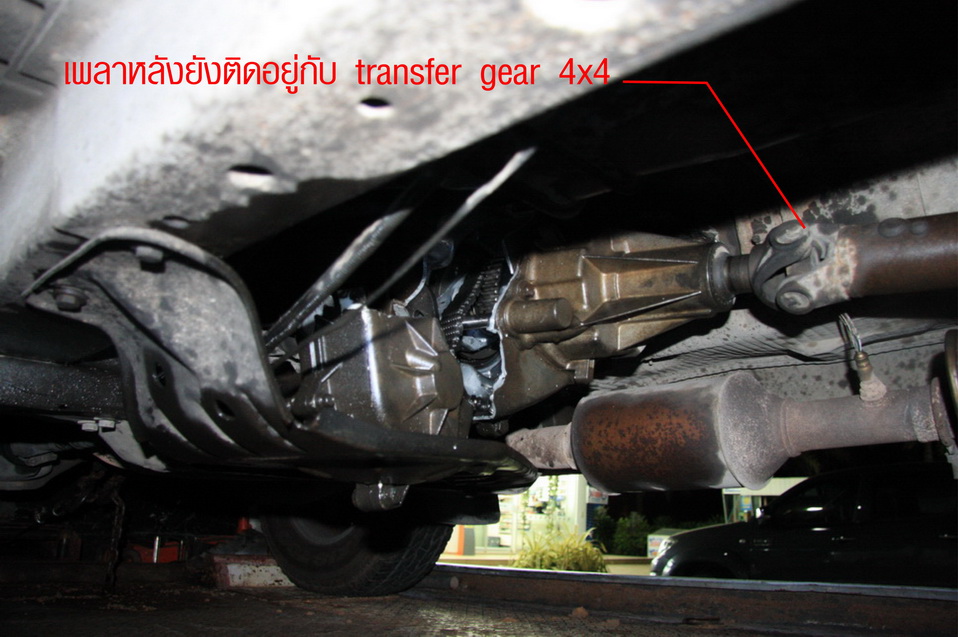 กลัวไฟใหม้พอควันเริมจางก็หาไฟฉายไปส่องดู โอ้โห ตามรูปเลยครับ ใต้ท้องเต็มไปด้วยนำ้มันเกียร์ที่โดนความร้อนของ