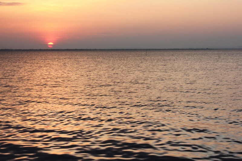 ตะวันทอแสงยามเย็น และกำลังจะตกลงที่ปลายน้ำสุดสายตาในเขื่อนอุบลรัตน์ สวยงามครับ