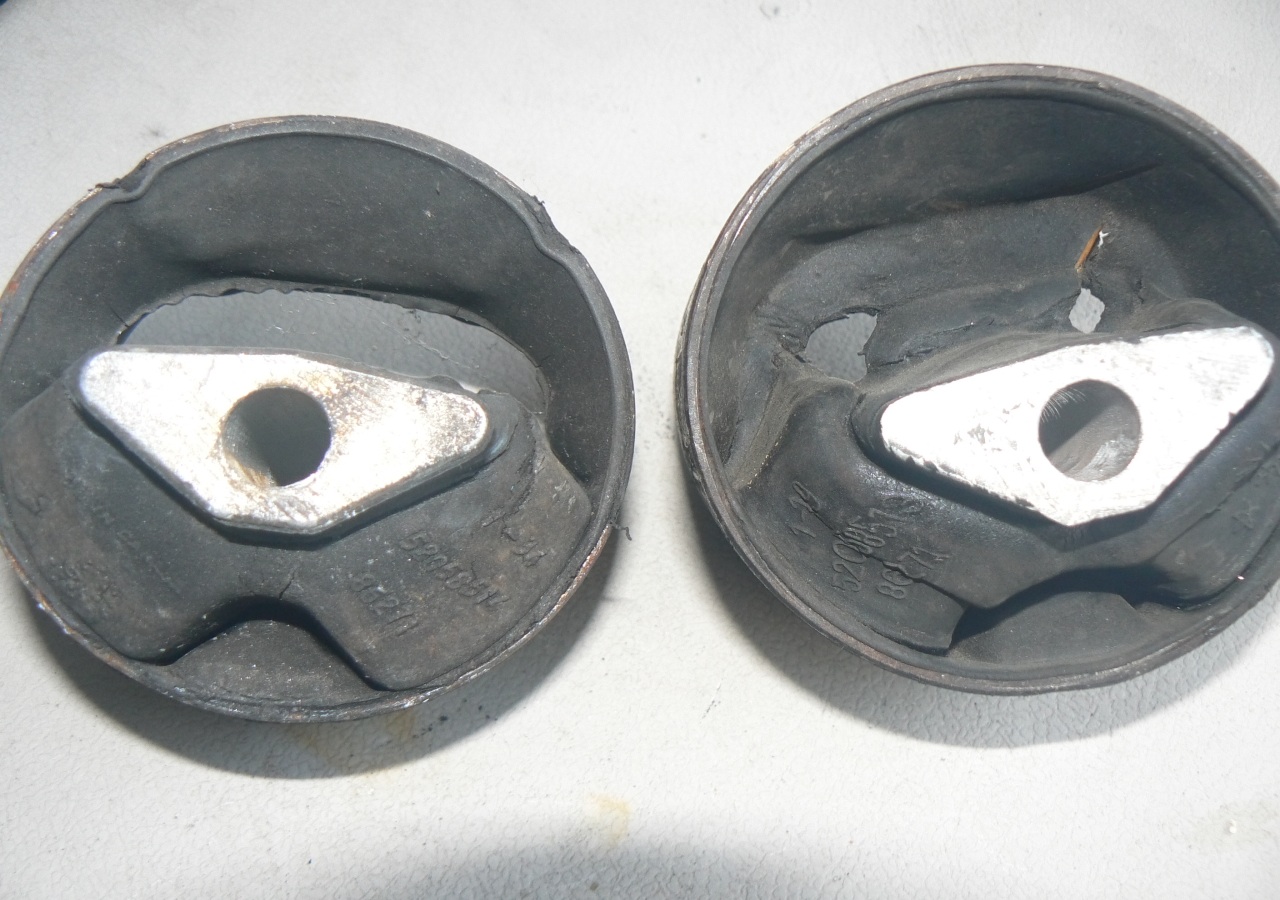ZJ ช่วงล่างกระเทือนมาก ลองมุดไปดูปรากฏว่ายางแท่นเครื่องด้านตรงแกนพวงมาลัยเริ่มทรุดและขาดเลยลองเปลี่ยนเอง (เหนื่อยเอาเรื่องเนื่องจากน๊อตเขาใส่นำ้ยาล็อกเกลียว) ไปซึ้อยางแท่นที่วรจักรและให้ช่างกลึงเขาอัดให้ ยางติดรถเป็นของเดิมทำใน canada พอเปลี่ยนเสร็จใช้งานช่วงล่างดีมาก แต่แล้วเมือเดือนผ่านมาช่วงล่างดังอีก เช็คอีกครั้งปรากฏยางแท่นเครื่องด้านที่ใกล้เขาควาย (เพิ่งเปลี่ยนโดยอู่ ของอู่) อายุเพียงปีเศษ มันมีอาการนิ่มและขาด ลองดูภาพ