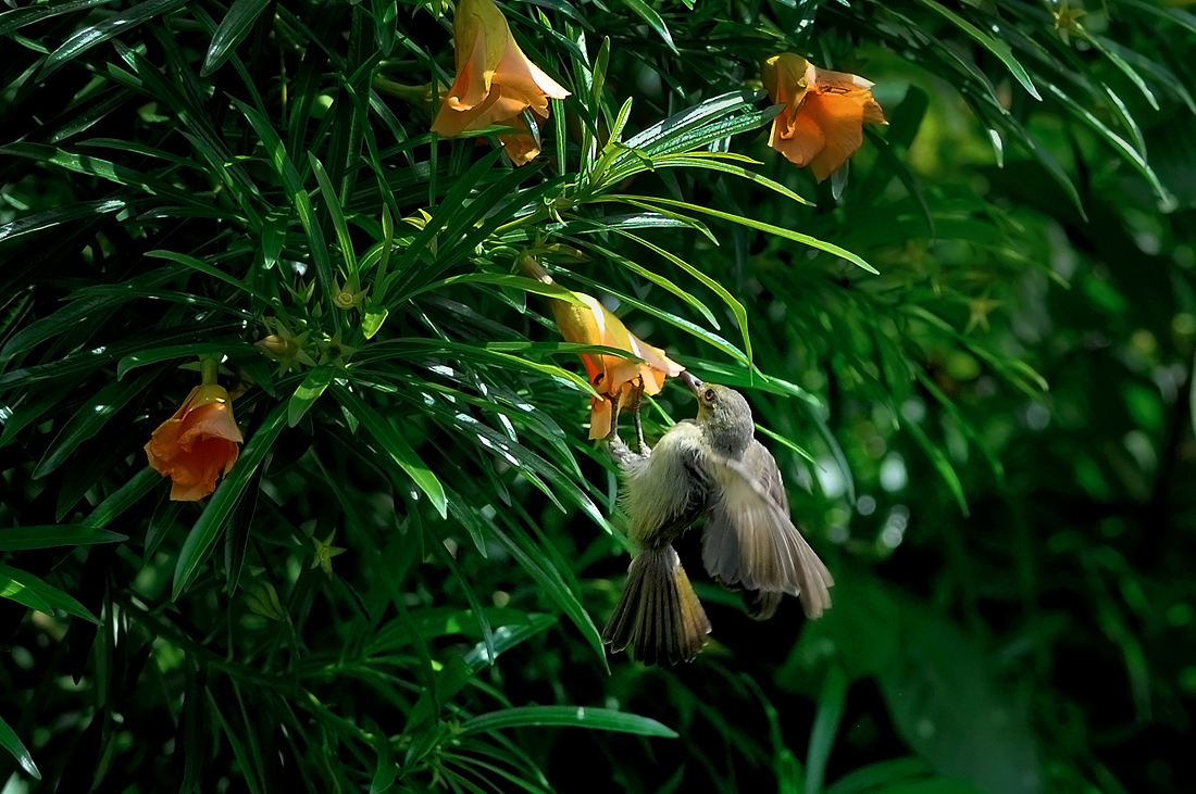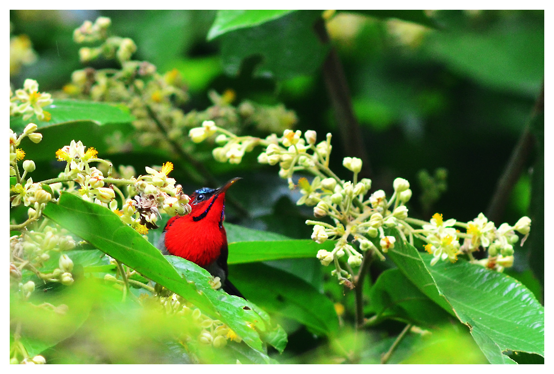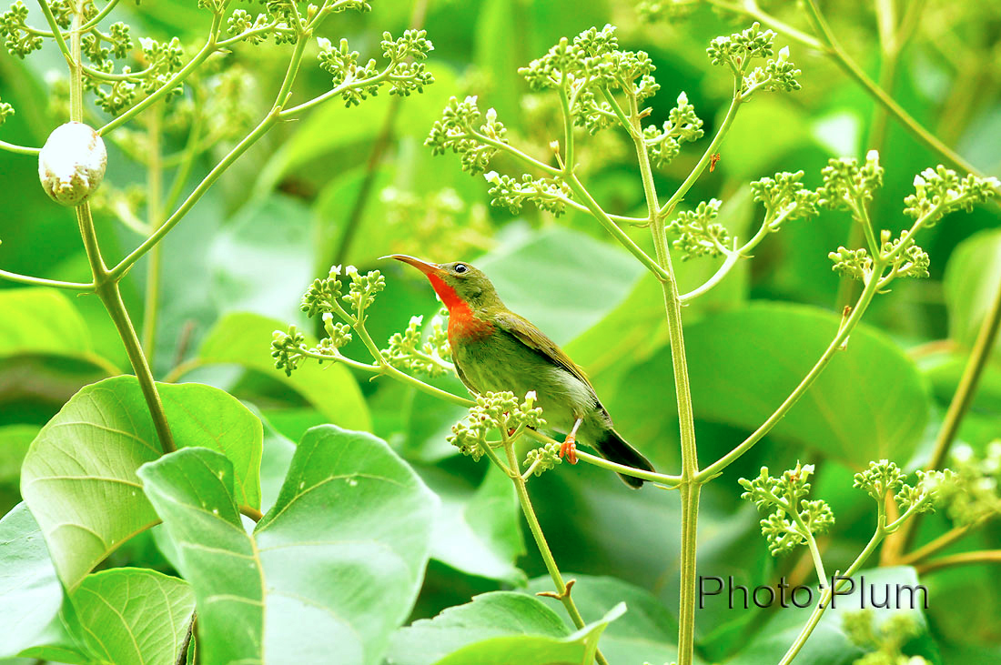 นกกินปลีคอแดง เอาลูกออกมากิน น้ำหวาน แต่ตัวเอง โทรมมาก.....