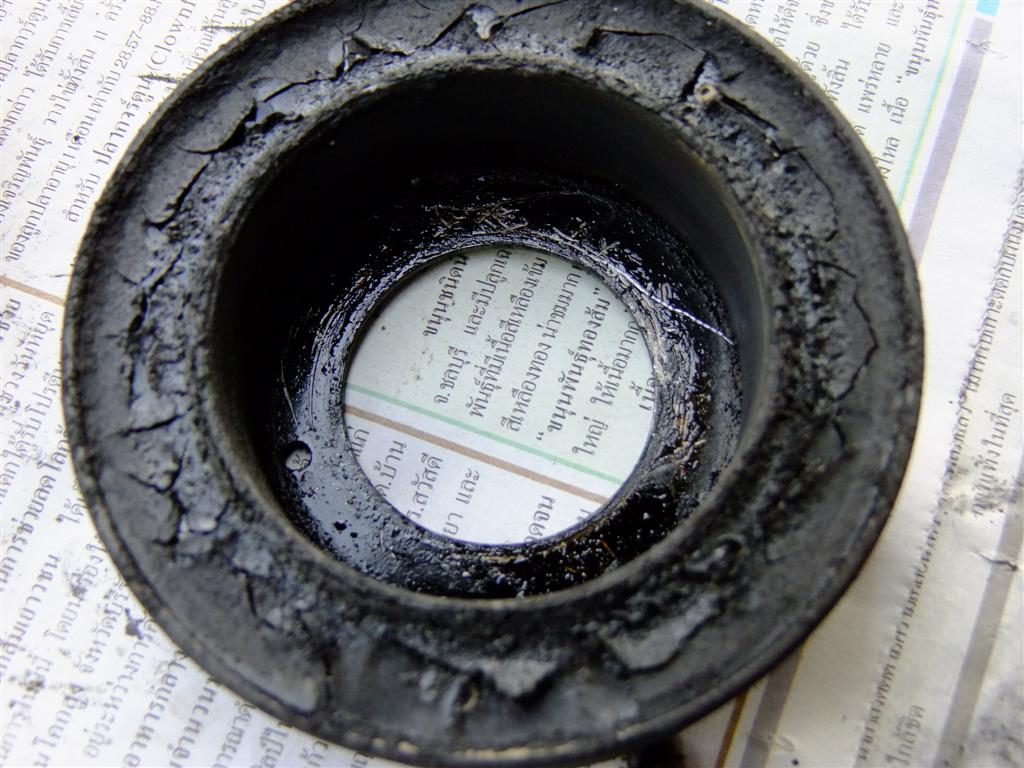 จะว่าเป็นที่เฟืองท้ายก็ไม่น่าใช่ เพราะเหยียบเบรกหยุดรถไว้เพลาขับไม่ขยับก็ยังดังอยู่ ถึงตอนนี้คิดว่าเกียร์ทรานสเฟอร์คงไปแน่ ไม่โซ่ก็เฟืองหรือตลับลูกปืนอะไรซักอย่างในนั้น ก็ทดลองหาฟังเสียงจากในยูทูบ เหมือนกับที่น้าฟังเลย ฟังทั้งเสียงเพลาเสียงเกียร์ คิดไปไกลถึงเรื่องซ่อมเกียร์เลย เทียวมุดเข้าไปดู ตอนดูมันก็ไม่ดังซะ บังเอิญเห็นท่อไอเสียมันแตะอยู่กับคานเหล็กที่รับชุดเกียร์ ดูแล้วก็เห็นว่าเหล็กที่แขวนยึดท่อไอเสียมันหักออกทำให้ท่อหย่อนลง คงจะเกิดจากการที่ช่างตัดต่อตอนที่ซ่อมท่อไอเสียนะครับ สงสัยว่าเสียงจะมาจากท่อไอเสียกระทบกับคานเหล็ก เลยหาไม้มารองจุดที่น่ากระทบกันดู ทดลองวิ่งเบาๆ ปรากฏว่าเสียงไปครับ เลยมุดเชื่อมจุดที่หักไว้ ตอนนี้เสียงปืนกลนั่นหายสนิทเลยครับ