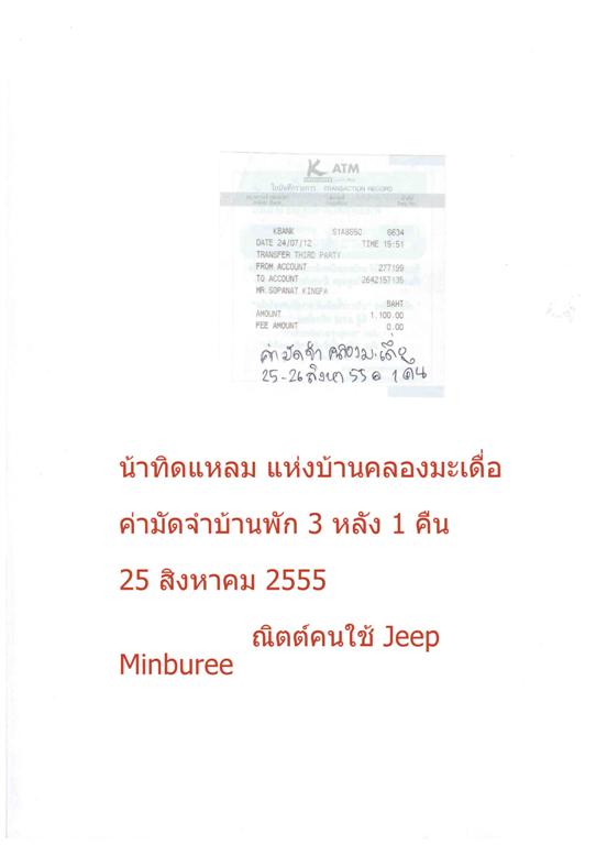 คำตอบที่ 21 เรียบร้อย โอนมัด...ที่พักเรียบร้อยแล้วเจ้าคะ จองหมดทุกหลัง ที่บ้านคลองมะเดื่อ ณ คลองสาม