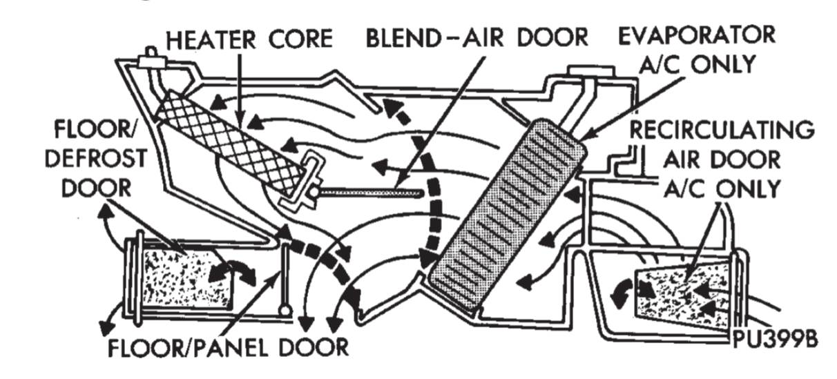 blend-air door เป็นตัวกำหนดอากาศเย็นให้ไปผสมกับอากาศที่ผ่าน heater core ...