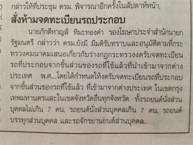 คร๊าบ.....ทีหยั่งงี้ก็ออกกมาห้ามจดทะเบียนรถจดประกอบ แล้วรถที่จดประกอบ