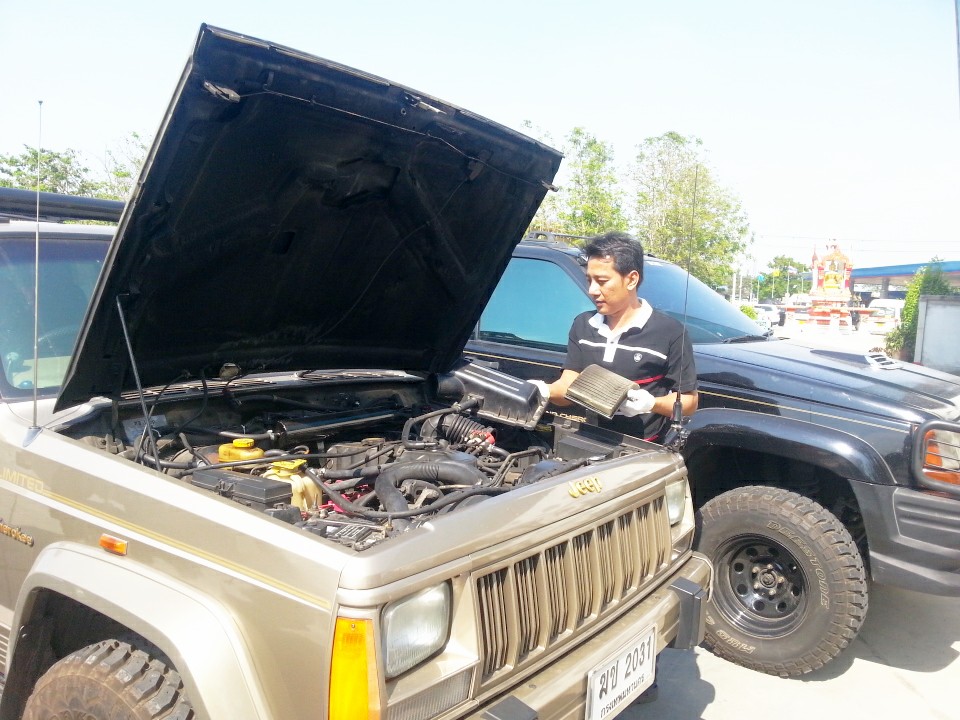 สืบเนื่องจากผมและคณะกำลังเดินทางไปเที่ยวที่พุเตย ระหว่างทางเกิดเหตุพัดลมฟรีปั็มแกนหลุด ทำให้สายพานขาดแบบเละ ผมตั้งใจจะโทรถามอู่ประจำตัว K Jeep เพื่อปรึกษาหาทางแก้ไข และอู่แถวสุพรรณหายากด้วยประกอบกับเป็นวันหยุดยาว โชคดีที่พี่ K เสียสละเวลาพักผ่อนตีรถมาซ่อมให้พร้อมทั้งภรรยาและลูกหลาน (คงไปพักผ่อนกัน)