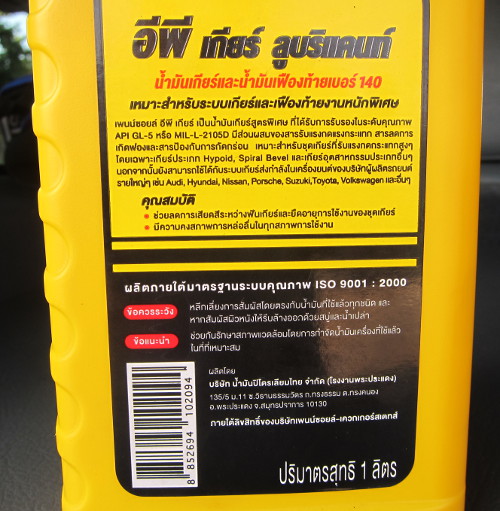 น้ำมันเฟืองท้าย(หล้ง)ตามรูปใช้ได้ไหมครับ เนื่องจากช่างเติมให้ผมดูจากเบอร์ SAE140 ก็ตรงตามกระทู้ที่ท่านสมาชิกได้แนะนำไว้ แต่ไม่มีคำว่า สำหรับ Limited Slip ผมเลยไม่แน่ใจว่าสามารถใช้กับเฟืองท้าย(หล้ง) ของ xj 2.5 ได้ไหมครับ หากใช้ไม่ได้ผมจะได้รีบถ่ายออกก่อนที่จะเกิดความเสียหายกับเฟืองท้ายครับ ...ขอบคุณครับ