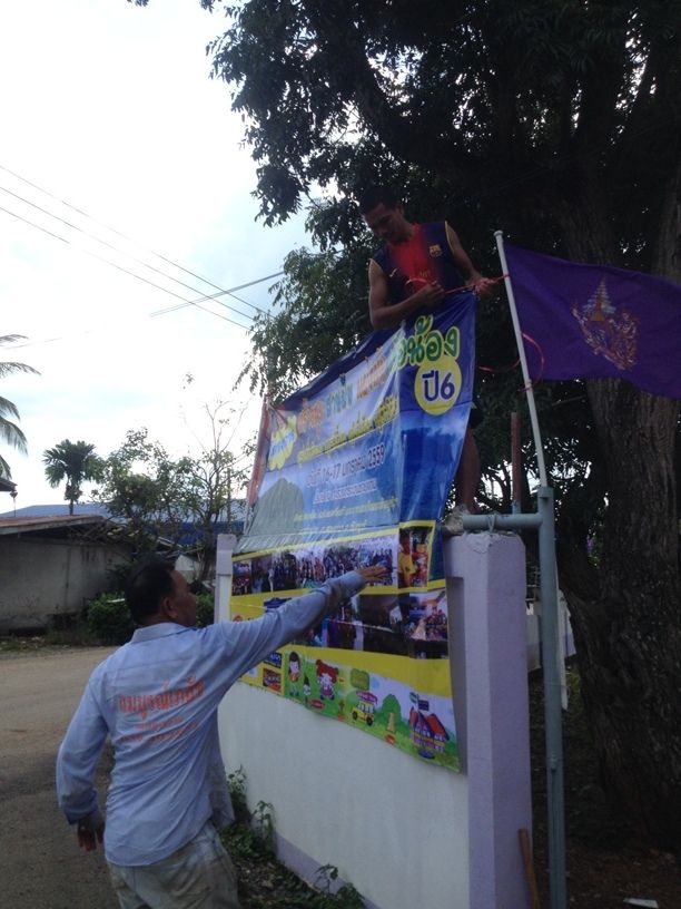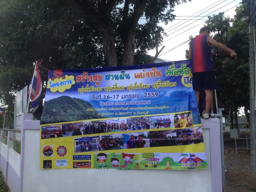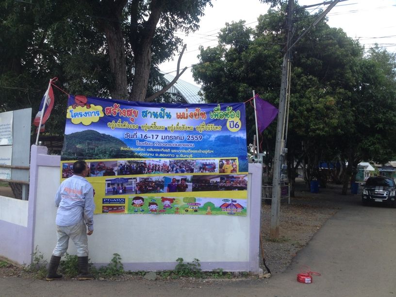 ...oIIIIIo... มาอัฟข่าวสารกันครับ วันอาทิตย์ที่ 1 พฤศจิกายน 2558 ผมได้เดินทางไปที่ โรงเรียนฯ อีกครั้งเพื่อไปติดต้้งป้ายผ้าเพื่องานประชาสัมพันธ์ ให้กับเด็กๆ และชุมชุนได้ทราบถึงกิจกรรมฯ ที่จะจัดขึ้นครับ.