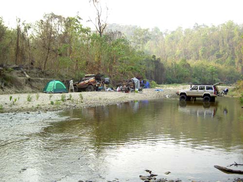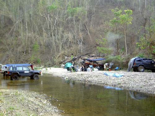 ถึงที่พัก ..บ่ายกว่า แดดร้อนมาก..น้ำยังพอมี..ก็ตั้งวงและนอนกันกลางสายน้ำ