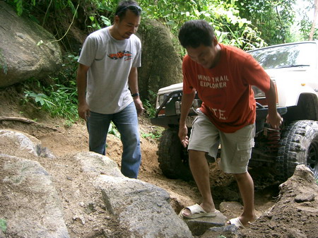 ทางขึ้นชันและมีล่องสลับ ประกอบกับหัวเนินมีหินก้อนใหญ่ ๆๆๆๆๆๆ ตอนนี้ระหว่างจอดรอรถคันหน้า