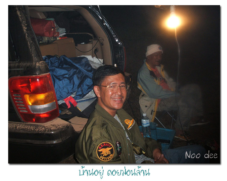 งานเข้าที่ว่า...ที่สร้างและเพิ่มสีสันให้กับดอยม่อนล้านกับพวกเราชาว JUC ....นอกจากเส้นทางเยี่ยมมากๆๆๆ ตื่นเต้นตลอด 5 ชั่วโมง คันเดียวมืดๆๆๆ...... ผ่านร้อยผา-ร้อยเหว ข้ามเขาไม่รู้กี่ลูกจำไม่ได้อิอิ ....มีหลายๆๆจุดที่ต้องจอดลงจากรถและใช้ไฟฉายส่องหาลายข้างหน้าว่าถนนข้างหน้าเป็นเหวหรือถนน อิอิ มันส์ดี แต่อุ่นใจเพราะยังพอมี วอ 144.050 ที่มีชัดบ้างไม่ชัดบ้างเพราะตัวขุนเขาบังสัญญาณ และ มือถือก็พอใช้ได้ ขาดๆๆๆหายๆๆ เช่นกัน อิอิ