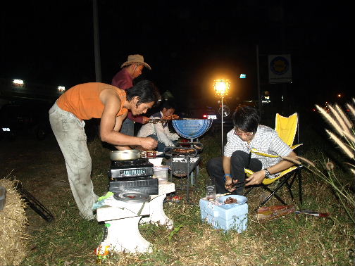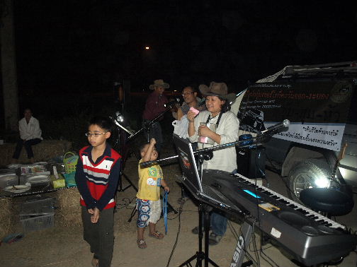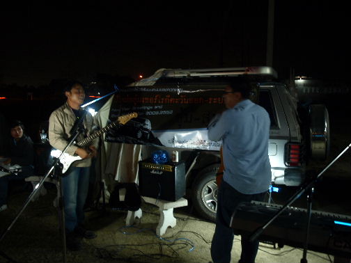 นักดนตรีกำลังจัดเตรียมอุปกรณ์ ขอขอบคุณ คุณพงษ์และคณะครับ ที่มาช่วยแต่งเติมสีสันต์บรรยายกาศให้งานมีแต่ความสุข มีแต่รอยยิ้ม ของพี่-น้องเรา