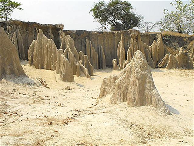ลักษณะเป็นเหมือนดินยุบตัวลงไปตามรูป
