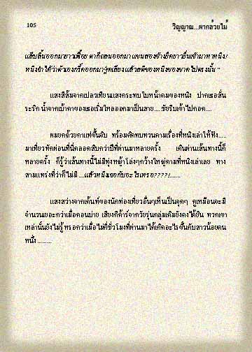 ชัยส่ายหน้าไปมา ผมก็ยังไม่ได้สอบถามเลยครับ กำลังสงสัยอยู่เหมือนกัน เราหันไปมองหน้าหนิงซึ่งตอนนี้ดูเป็นปกติแล้วในเชิงคำถามเกือบพร้อมกัน