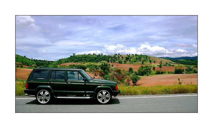 ผมเป็น XJ 95 ครับ ลงมาหน้า 3 หลัง 1 นิ้วครับ 235/55R18 ล้อหลังหนุน Adaptor 1.5 นิ้วครับ