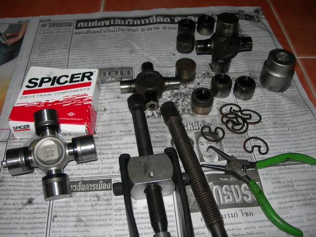 ระวังยางกันฝุ่น อย่าให้ขาด ตรงกลางจะมีสปริง ระวังอย่าให้หาย ตัวนั้หลุดออกมาได้ ที่เหลือแยกชิ้นส่วน นำไปล้างด้วยน้ำมันเบนซิน ยกเว้นชุดตาเหลือกไม่ต้องล้าง พอแห้งได้ที่นำมาเตรียมอัดจาระบีประกอบเข้าที่เดิม ตอนประกอบ