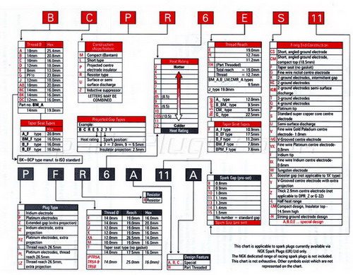เริ่มแรกขอเริ่มที่เบอร์หัวเทียนกันก่อนนะครับ หัวเทียนในแต่ละยี่ห้อนั้น มันบอกเบอร์ไม่ได้ ( เพราะมันไม่มีปาก ! ) ตัวเลขแต่ละแบรนด์ก็ไม่เหมือนกัน ถ้าจะเทียบกันจริง ๆ คงต้องใช้ตารางเทียบว่าแบรนด์นี้ เบอร์นี้ ตรงกับรุ่นอะไร ถึงจะชัวร์ และอย่างที่ใช้กันประจำ ๆ พูดกันติดปากก็ไม่พ้น " NGK " หัวเทียนทั่ว ๆ ไปที่เรียกว่า หัวเทียนร้อน จะเป็นเบอร์ต่ำเสมอ ส่วนหัวเทียนเย็นจะเป็นเบอร์สูง ว่าแต่....ร้อนกับเย็นมันต่างกันยังไง เดี๋ยวจะอภิปรายให้ฟัง...