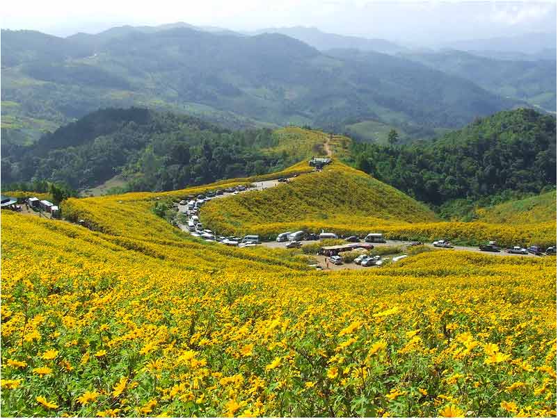 จำง่ายๆ เลยครับ ว่าดอกบัวตองจะบานสวยสุดๆ ตอนช่วงลอยกระทง แหละครับ หลังจากนั้นจะค่อย ล่วงโรยลงไปเรื่อยๆ
